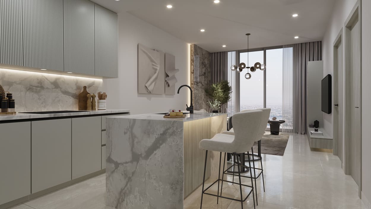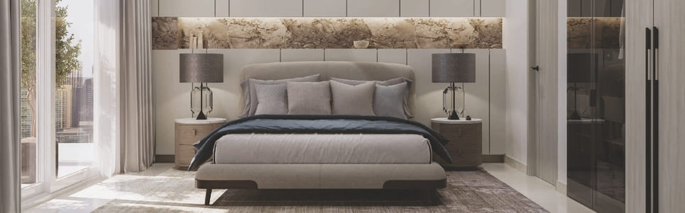 Designer reception lobby, so you step into sophistication from the moment you arrive. Smart Home System with cutting-edge technology. Heightened glass embracing natural light for enjoying expansive views. Dedicated Mail Box embedded with Main Door. Designer apartments with European Feature Wall, Bed Wall Paneling & Consoles. Combination of Glass wardrobes to add a touch of elegance to your bedroom. European Tiles & Appliances. High Speed Elevators.
