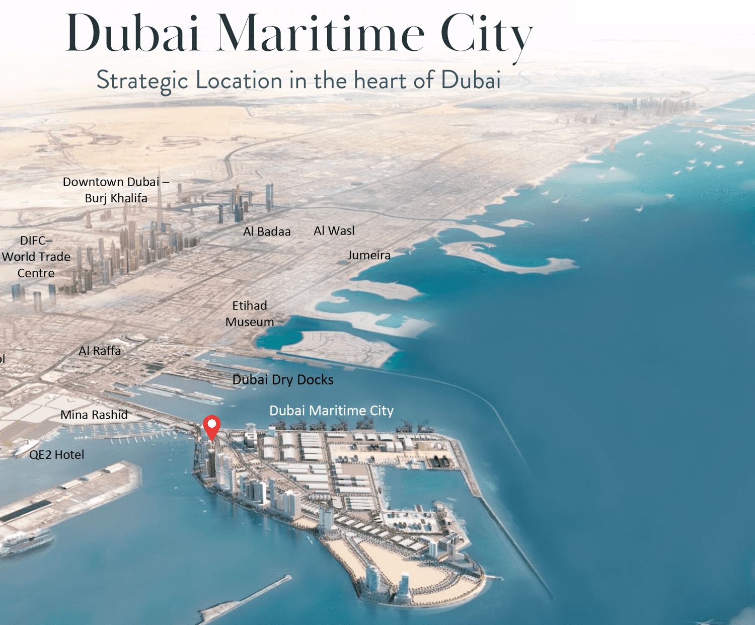 Dubai Maritime City is strategically located, offering convenient access to major transportation hubs and business districts. The community benefits from its proximity to Dubai's ports, connecting it to global trade routes and facilitating seamless movement of goods and services. Its strategic location ensures efficient logistics and easy connectivity for businesses and residents alike.