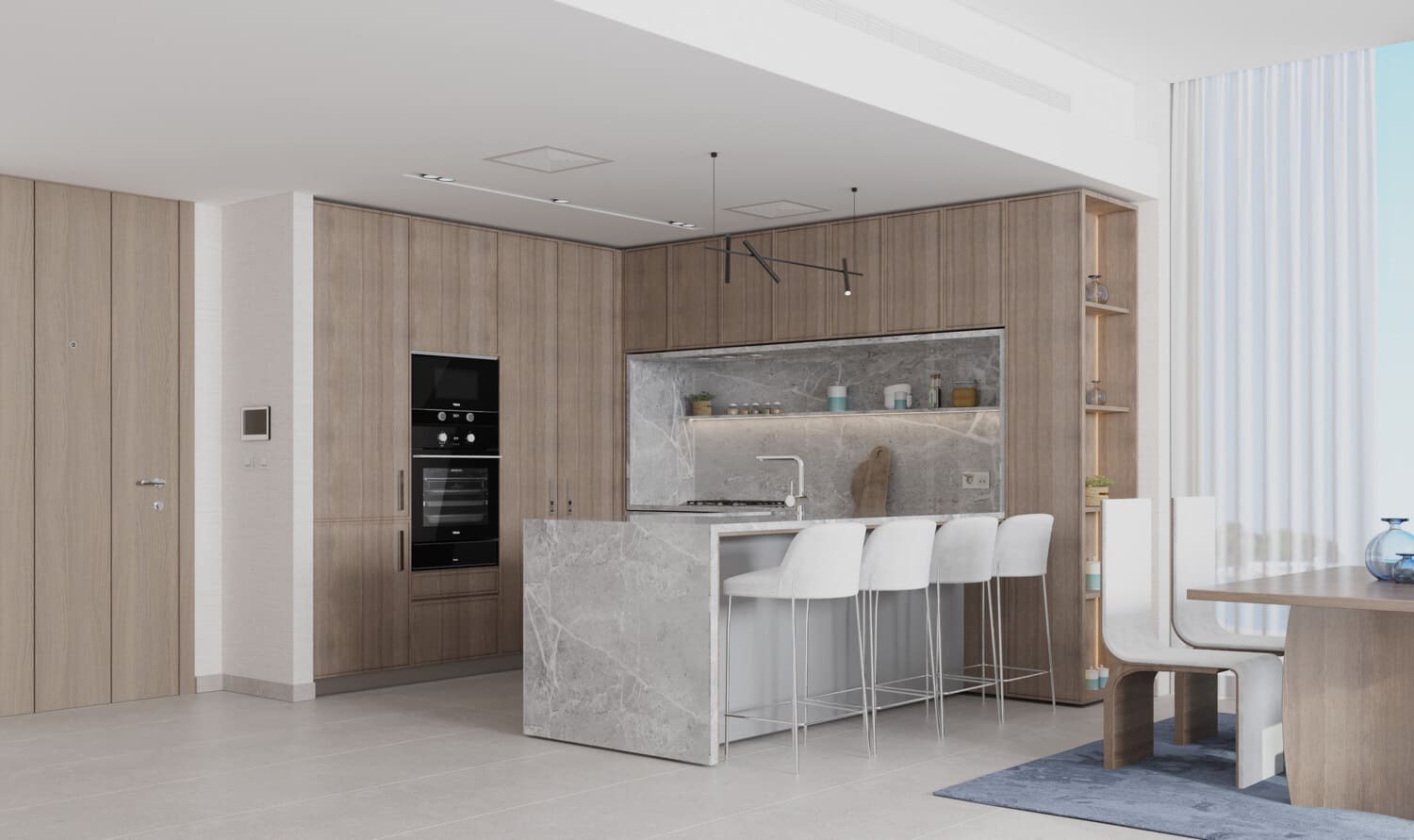 A fully equipped kitchen in any apartment is the center of family life, where food is prepared with love and conversation is almost constant. Art Bay's minimalist design makes kitchens spacious, comfortable and inviting for vibrant family living.