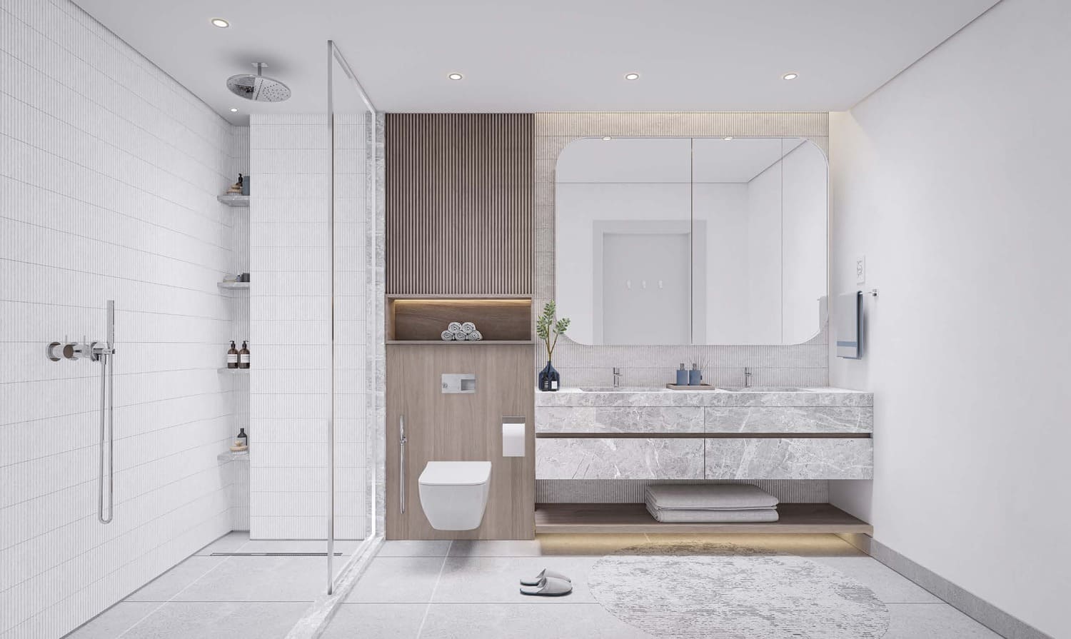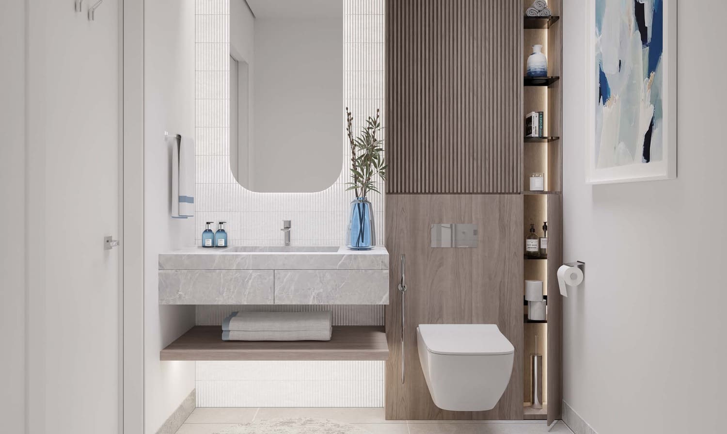 Bedrooms at Art Bay are the most notable example of the apartments’ elegant charm. Above the fine, minimalist detailing, generous wardrobes, and mirrors, the natural light from the floor-to-ceiling windows draws you into the relaxing ambiance of the room. And, with direct access to the balcony, residents experience the magnificence of the Dubai skyline from their bedrooms.