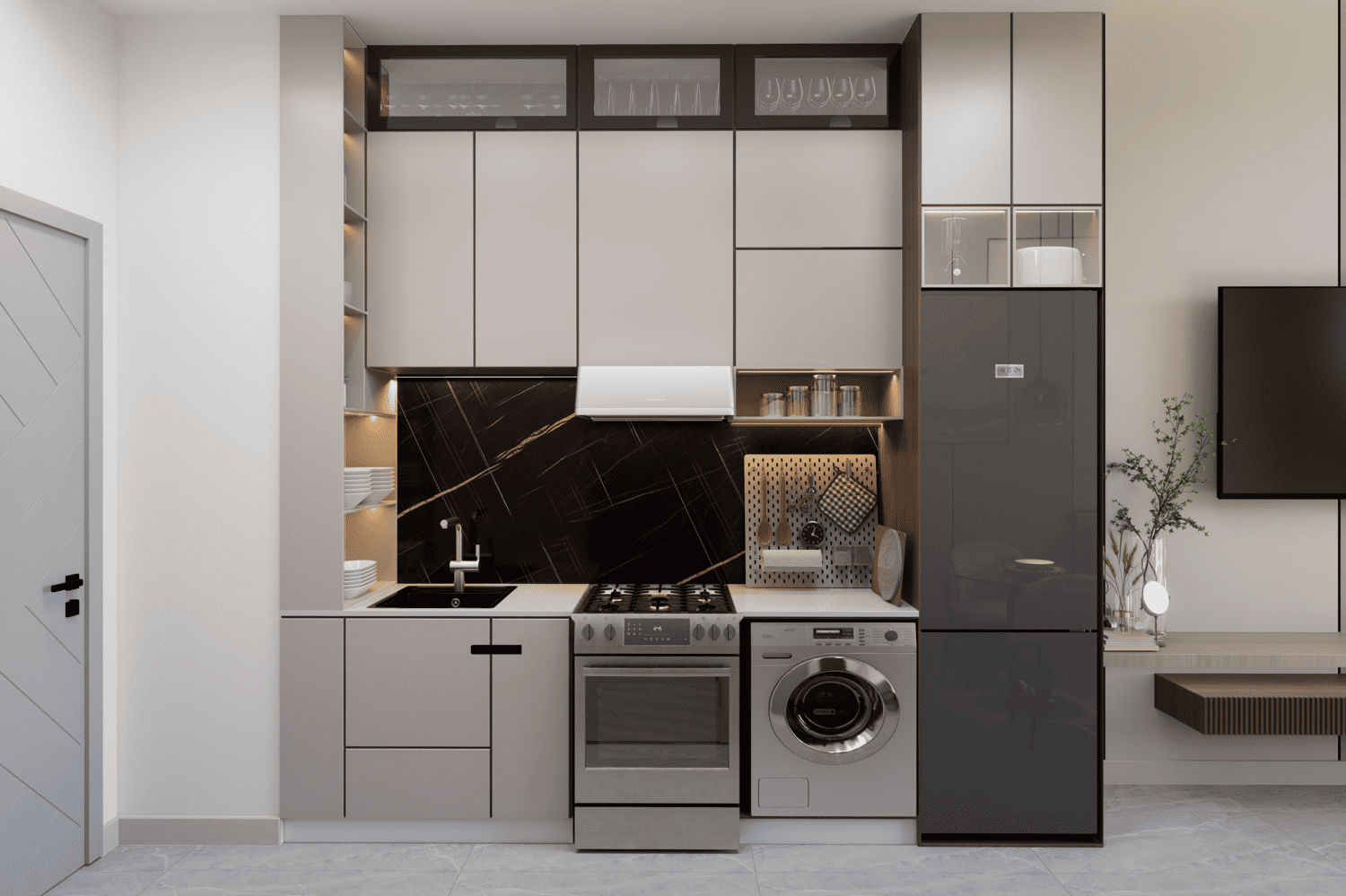 The building's minimalist facade and premium finishes give it a sophisticated yet welcoming character, setting it apart from other developments in the area. Every detail, from the grand entrance lobby to the rooftop leisure deck, is designed with elegance and function in mind. Covered parking, high-speed elevators, and secure access ensure a seamless living experience.