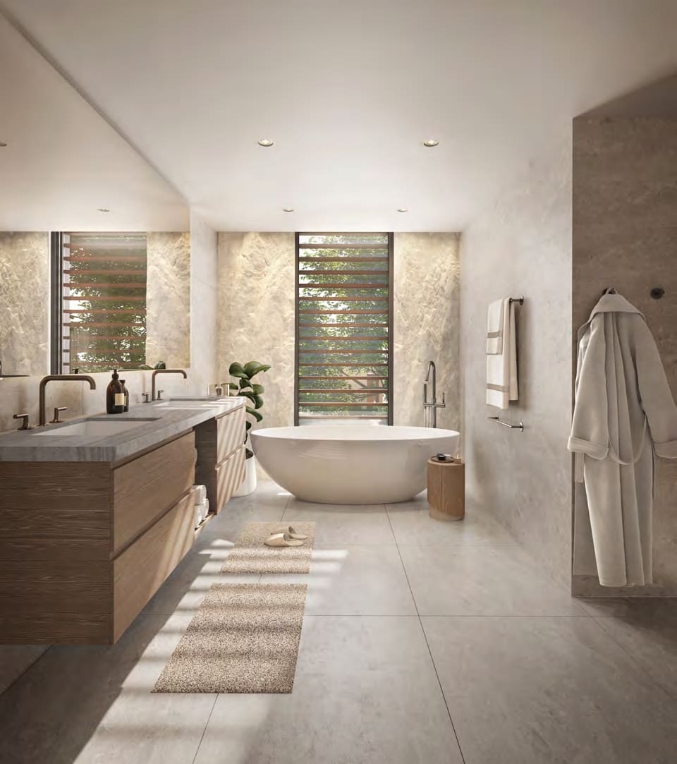 Light finish and dark finish are proposed. A laminate finish offers a sleek and durable surface. Ceramic finishes for sanitaryware offer a classic and timeless appearance. They are known for their durability, easy maintenance, and ability to withstand moisture, making them ideal for bathroom fixtures like sinks. Porcelain tile flooring is renowned for its strength, durability, and versatility. Porcelain tiles are resistant to moisture, stains, and scratches, making them an excellent choice for high-traffic areas like kitchens and bathrooms.