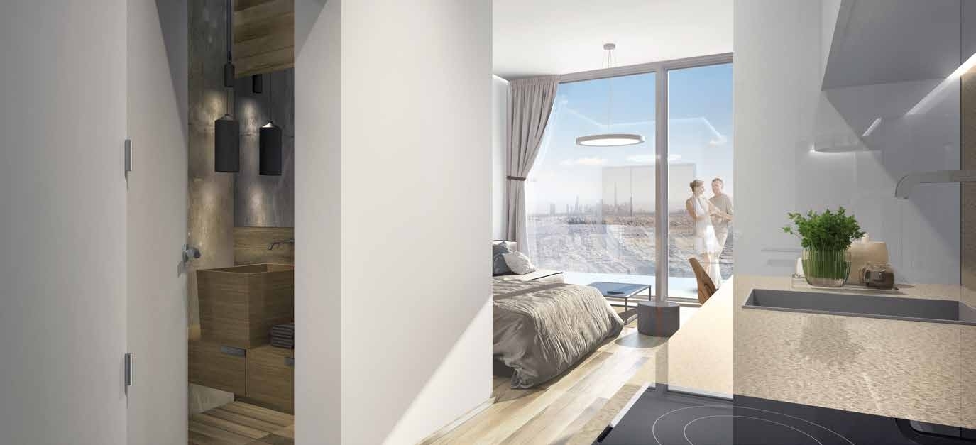 Offering comfort in a beautifully designed package, Aura apartments are paneled with ceiling to floor windows that warm each living unit in the warm colors of Dubai, offering breathtaking views and exquisite spaces.