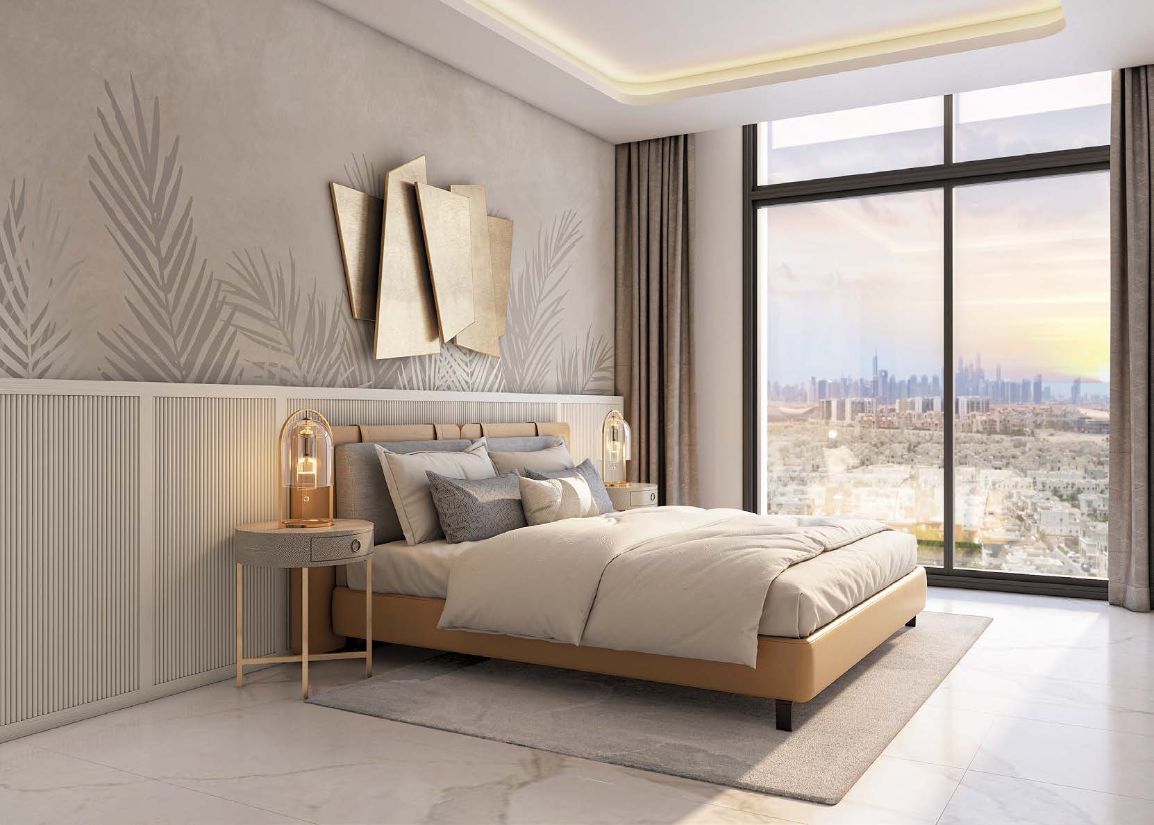 The apartments in Azizi Central boast a stylish, modern, and sophisticated aesthetic. The interiors feature contemporary finishes, sleek lines, and a palette of neutral tones, creating an atmosphere of elegance and refinement. The attention to detail is evident throughout the living spaces, from the carefully chosen materials to the high-quality craftsmanship.