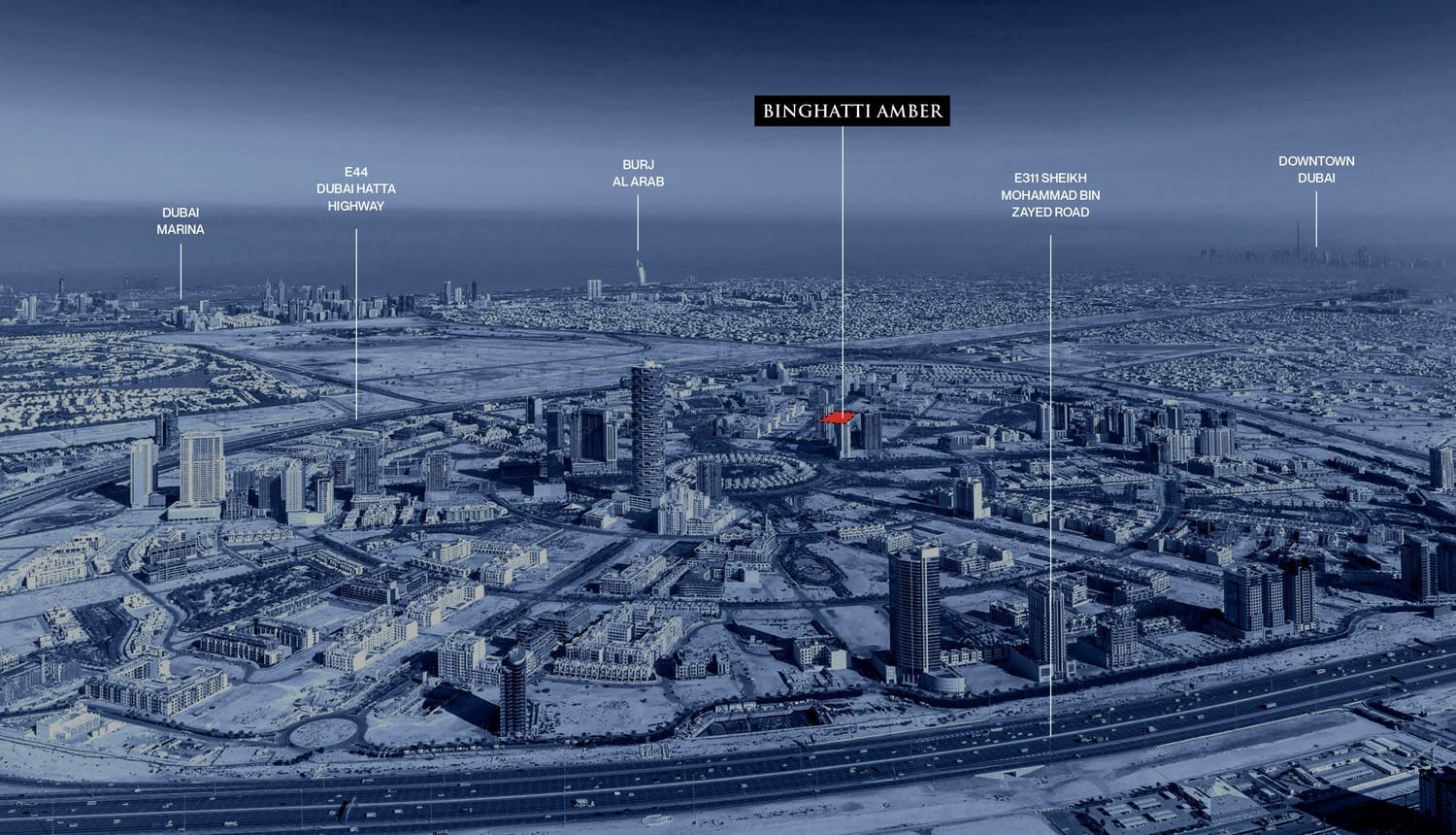 The building showcases Binghatti Developers’ signature contemporary design style while also keeping traditional elements found in Middle Eastern art and architecture in consideration. The unique balcony design of the building offers residents an outdoor space to enjoy without compromising privacy. The building’s prime location ensures a great investment for its future owners.