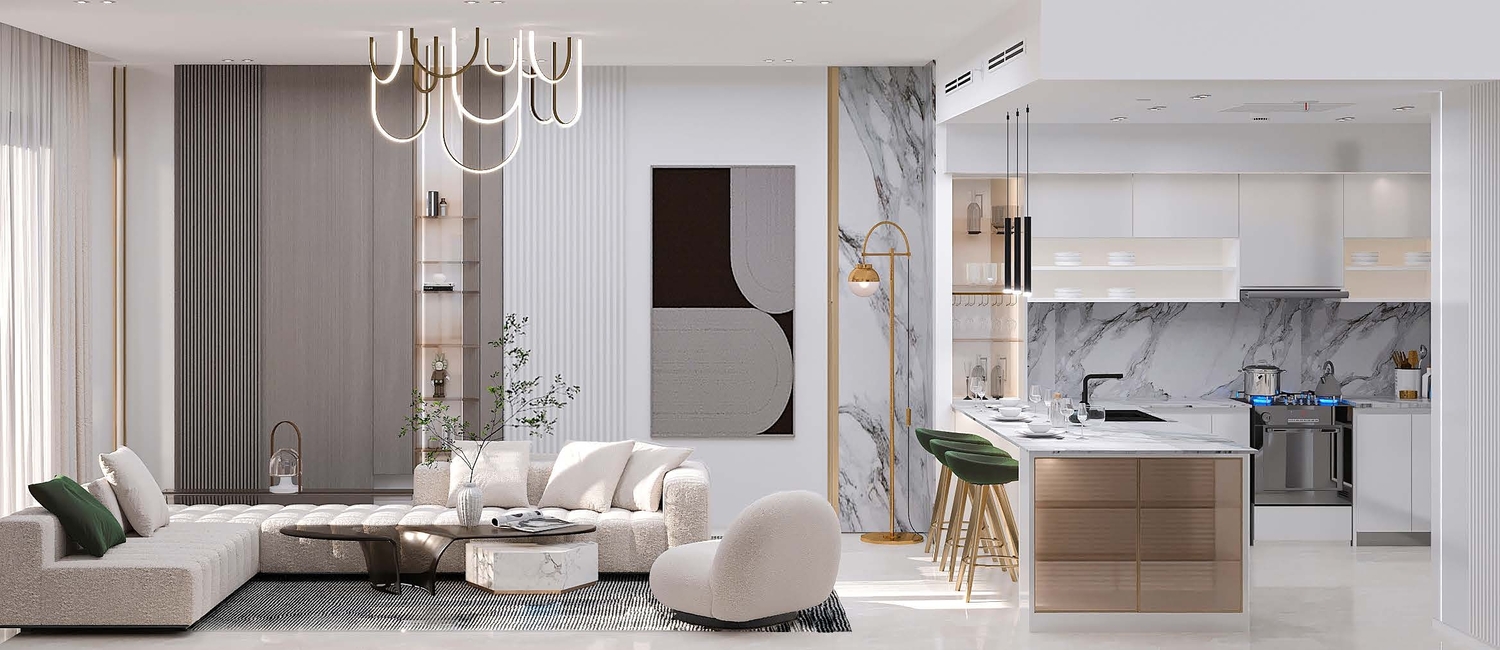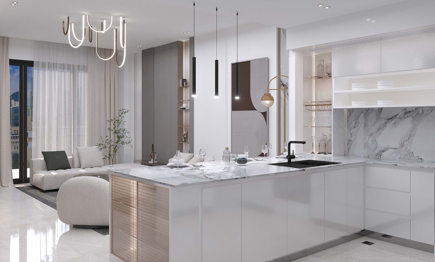 The lavish materials and uncompromised finishing throughout the building depict supreme quality and craftsmanship from only the most distinguished of international suppliers. All the fittings and fixtures within the apartments are hand-picked to perfectly compliment the interior design. The sliding glass doors and windows create a perfect balance between interior and exterior spaces while maintaining the highest level of environmental control and functionality.