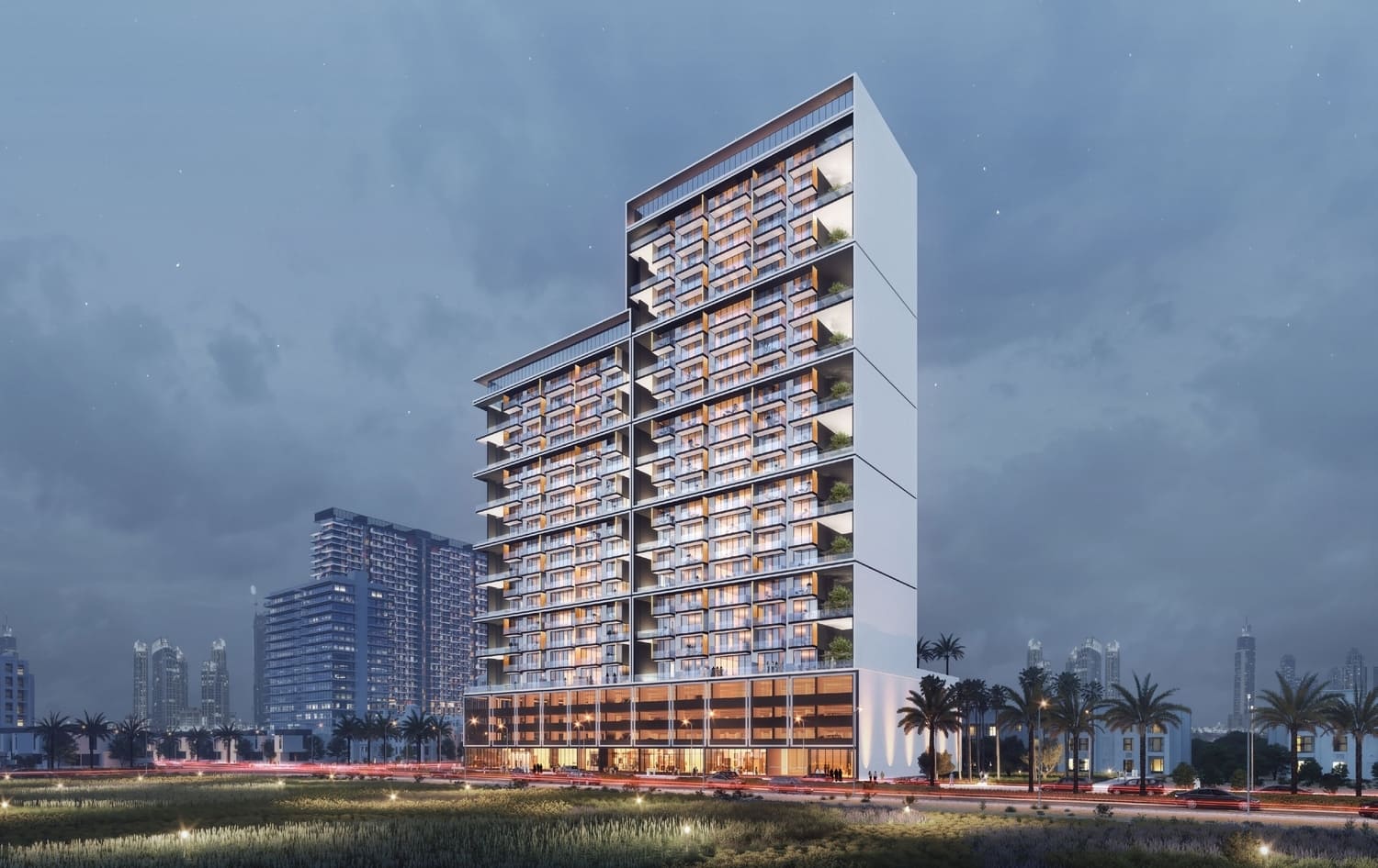 The building showcases Binghatti Developers’ signature contemporary design style while also keeping traditional elements found in Middle Eastern art and architecture in consideration. The unique balcony design of the building offers residents an outdoor space to enjoy without compromising privacy. The building’s prime location ensures a great investment for its future owners.