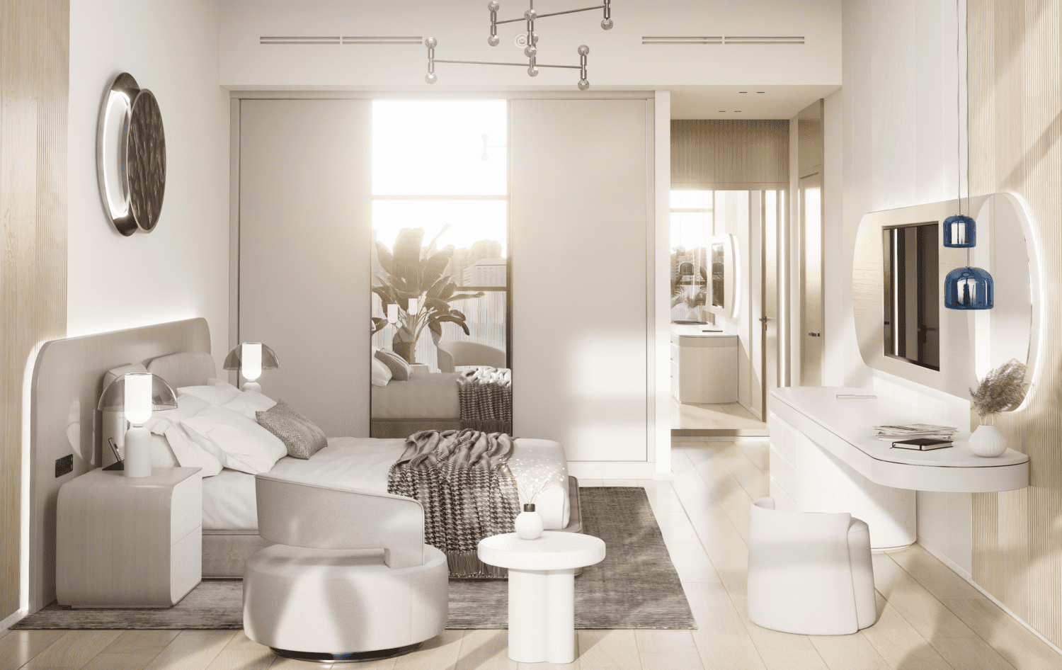 The lavish materials and uncompromised finishing throughout the building depict supreme quality and craftsmanship from only the most distinguished of international suppliers. All the fittings and fixtures within the apartments are handpicked to perfectly compliment the interior design. The sliding glass doors and windows create a perfect balance between interior and exterior spaces while maintaining the highest level of environmental control and functionality.