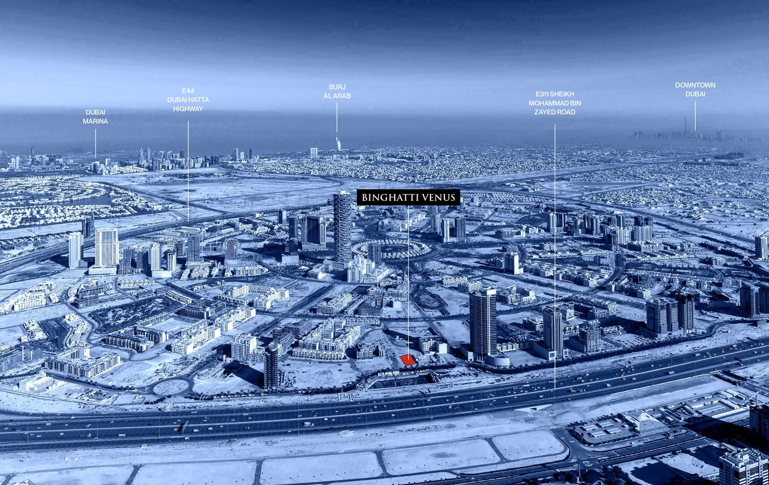 Binghatti Venus project features symbolic design cues, where individual balconies are interwoven together to form a unified community. This interesting pattern creates an illusion which makes the building’s static environment appear as a dynamic design. The building’s unique balcony design provides outdoors spaces for residents to enjoy, while also ensuring a sustainable design by providing shade which greatly reduces the amount of energy required to cool the living spaces of the building. The building showcases Binghatti Developers’ signature contemporary design style while also keeping traditional elements found in Middle Eastern art and architecture in consideration. The unique balcony design of the building offers residents an outdoor space to enjoy without compromising privacy. The building’s prime location ensures a great investment for its future owners.