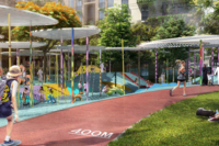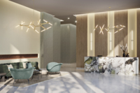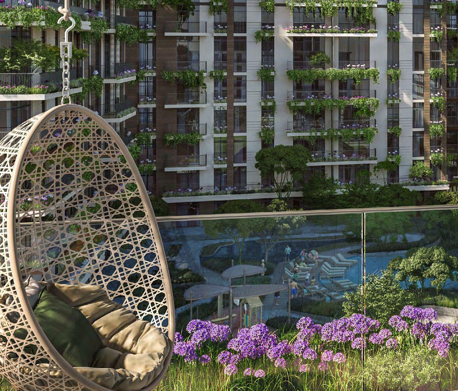 Celadon is a mid-rise building offering spacious 1, 2, and 3-bedroom apartments with top-notch finishes and modern amenities. The terraced residences are designed with light colors and carefully selected materials that highlight a connection to the natural surroundings. The addition of draping plants on the balcony edges adds a touch of nature to the sleek urban design.