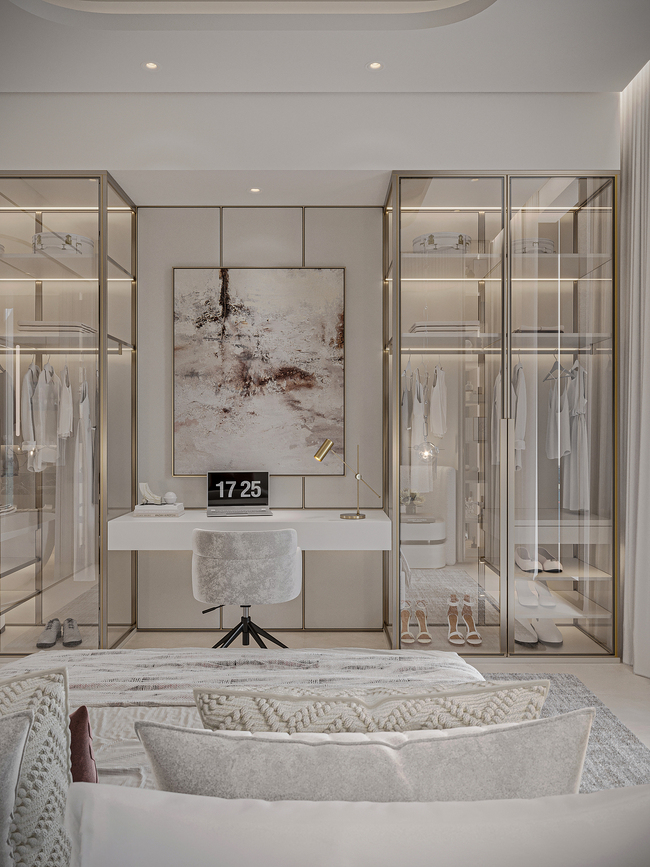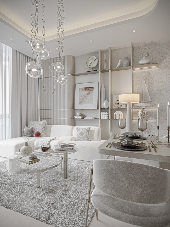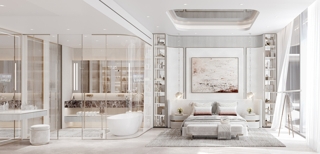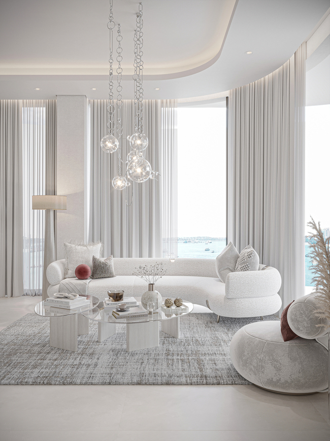 Panoramic floor-to-ceiling windows invite natural light to flow effortlessly, reflecting and diffusing across the interiors. Every space is thoughtfully designed to enhance brightness, highlighting the refined material palette and bespoke furnishings bathed in sunlight.