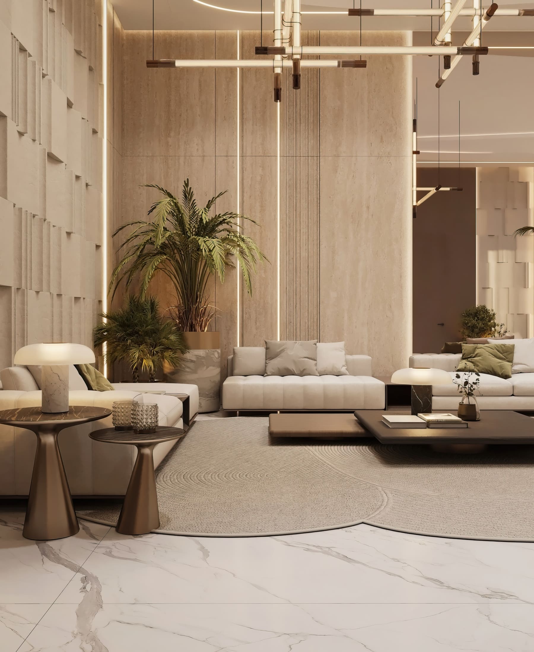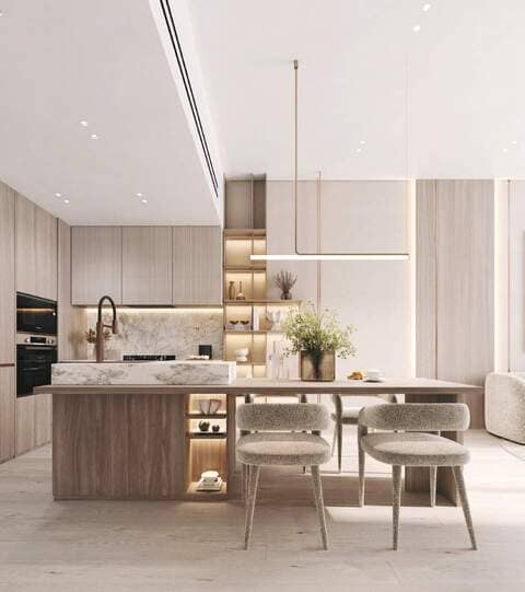 Cove by Imtiaz presents meticulously crafted interiors, adorned with timeless materials and unmatched finishes. Quality materials, soothing tones, and refined finishes converge to create an ambiance embodying timeless style, functionality, and a touch of luxurious comfort.