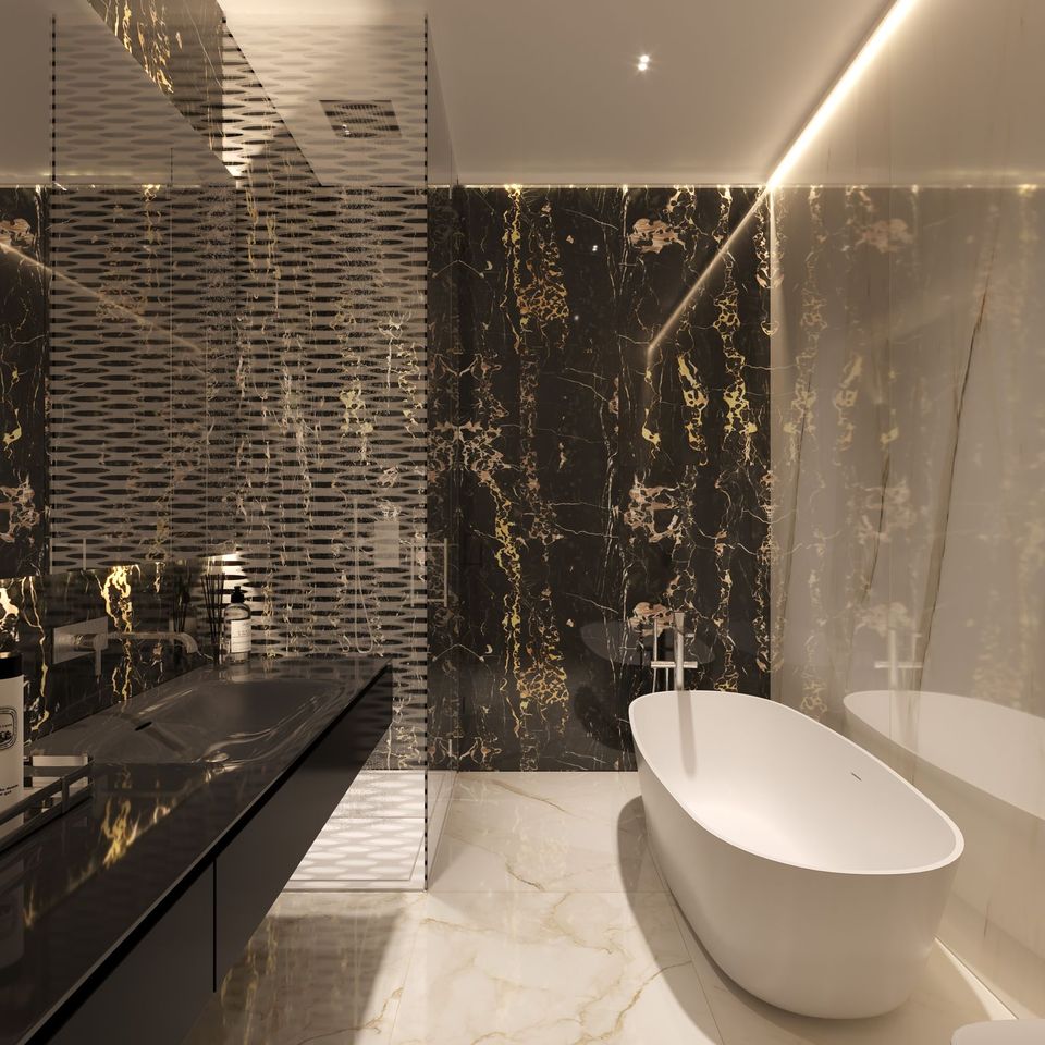 Bathrooms: Marble flooring and skirting, Marble / wallpaper walls, Moisture resistant gypsum ceiling finished with paint, Marble counter top, Lacquered / Veneer joinery, Gessi, Newform or equivalent sanitary fixtures Kohler, Duravit, Geberit or equivalent sanitarywre