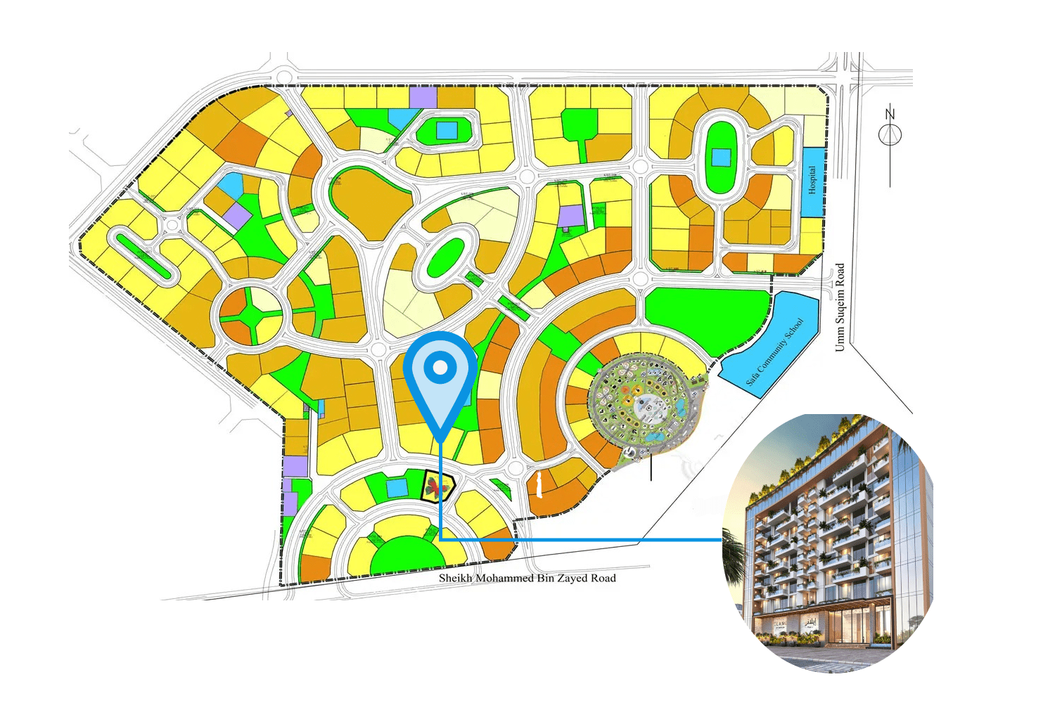 Arjan is a residential community located near the popular attractions of Dubai, such as the Dubai Miracle Garden and the Mall of the Emirates.