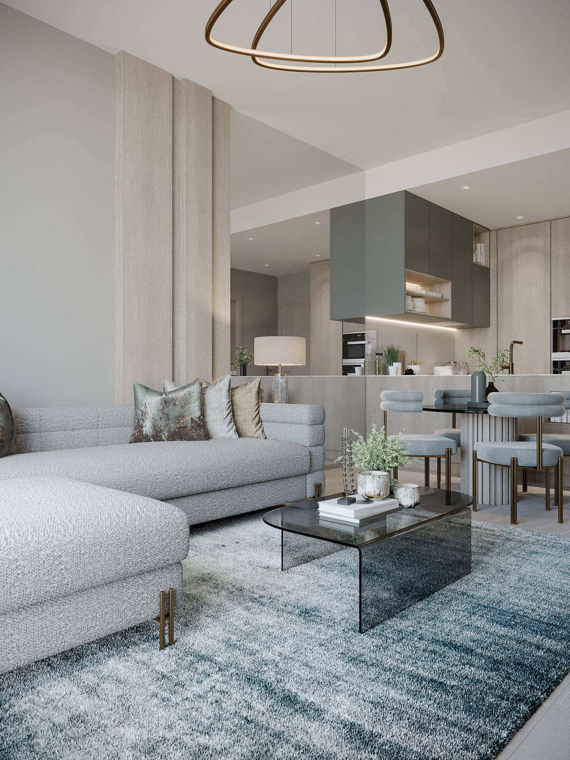 Fully furnished, elegantly designed interiors with spacious living spaces equipped with exquisite state-of-the-art furnishings.