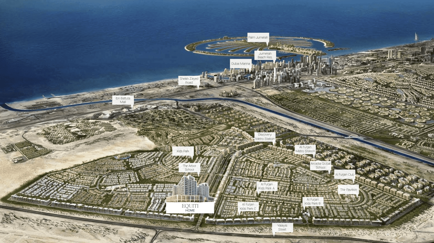 Al Furjan is strategically located near major transportation networks, including Sheikh Zayed Road and the Dubai Metro. This makes it easily accessible for residents and provides convenient connectivity to other parts of Dubai.