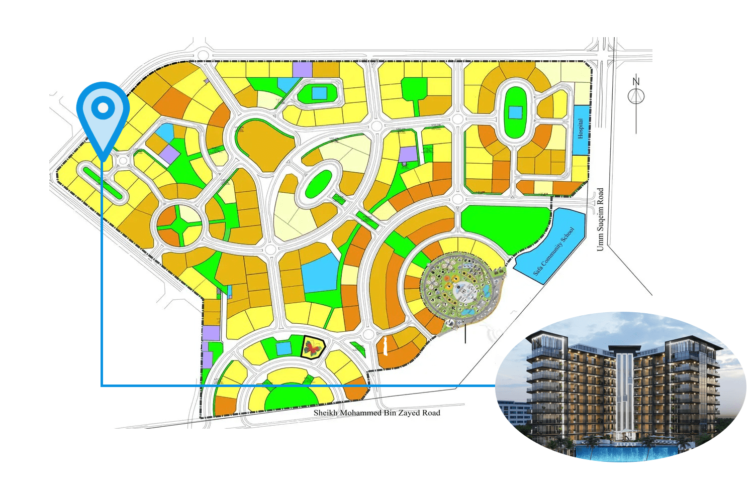 Arjan is a residential community located near the popular attractions of Dubai, such as the Dubai Miracle Garden and the Mall of the Emirates.