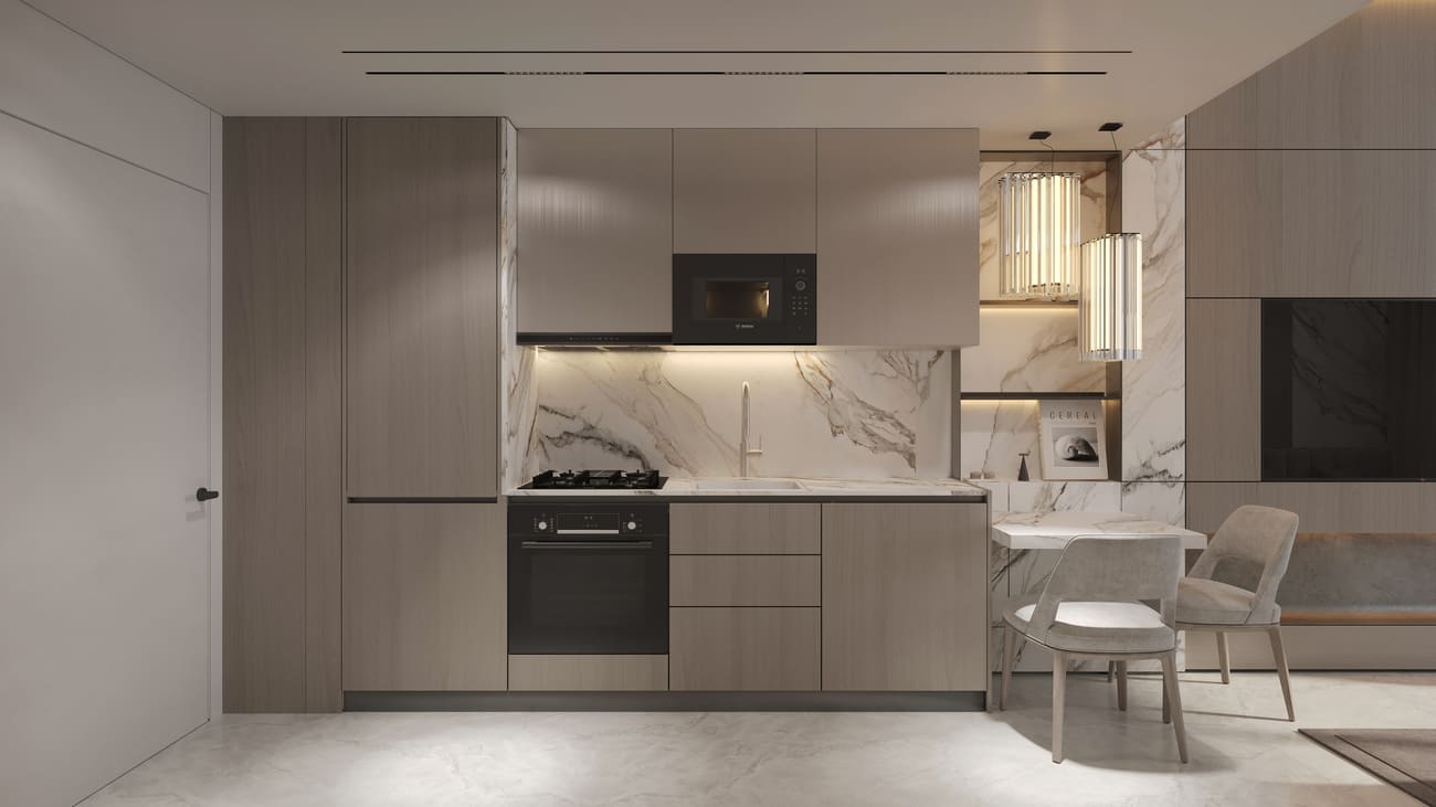 Equipped with German kitchens. Designer Kitchens with islands, soft-close drawers, hidden storage, and premium granite countertops. Quality German appliances.