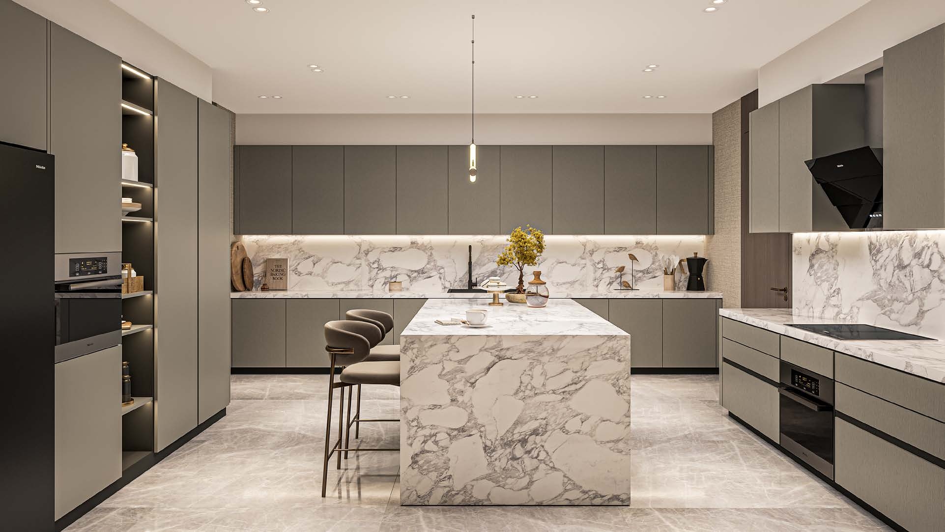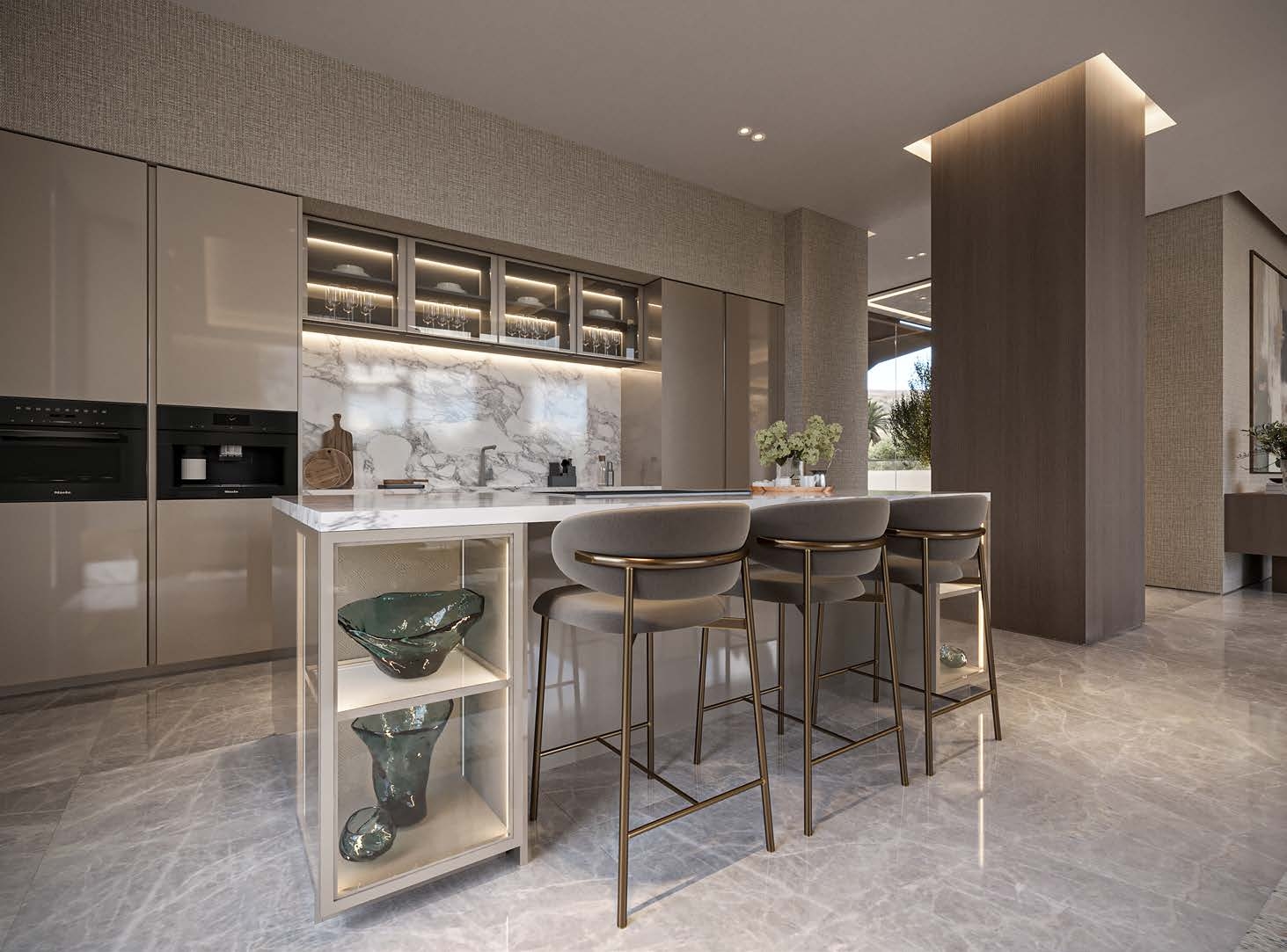 Modern finishing with high quality materials. Residents can choose from 3 types of finishes - Grey Riviera Finishings; Beige Riviera Finishings & Versace Inspired Finishings.