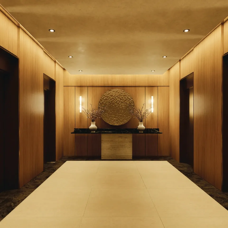 The building’s sleek glass exterior stands as a testament to cutting-edge architecture, seamlessly blending form and function. Inside, the opulent interiors showcase a commitment to unparalleled quality, featuring premium finishes like marble flooring and natural wood accents. These touches create a warm, inviting atmosphere that exudes understated elegance.