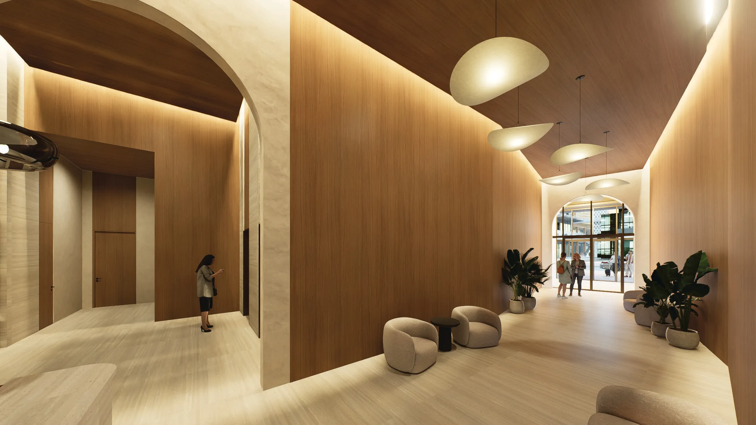 Premium materials such as marble and natural wood for a luxurious feel.
