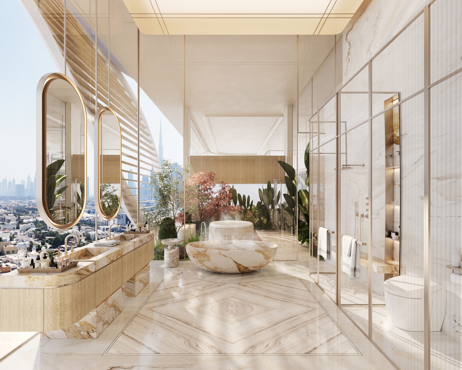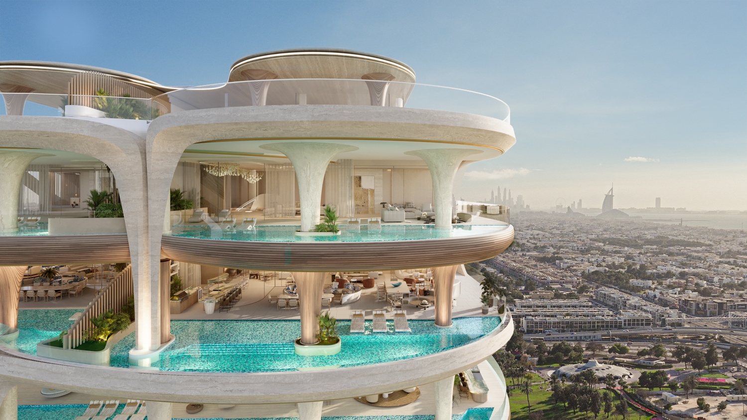 Casa AHS project epitomizes ultra-luxurious living with a diverse selection of residences, including 3, 4, 5, and 6-bedroom Sky Villas, along with expansive Sky Mansions and Sky Palaces. These elegant homes range in size from 5,088 sq. ft. to an impressive 29,700 sq. ft., catering to a variety of preferences. Each residence features private elevators, grand double-height ceilings ranging from 6 to 12 meters, and floor-to-ceiling windows that frame stunning views of the Dubai Water Canal and Safa Park. Designed with meticulous attention to detail, Casa AHS seamlessly blends modern opulence with timeless sophistication.