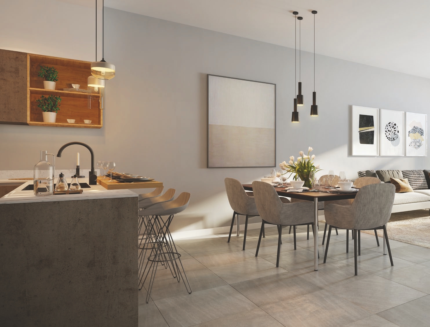 Step into the modern, yet lush and soothing interiors of this development, and you will immediately begin to feel your stress fading away. Your shoulders begin to loosen, your mouth begins to smile, and you breathe a big sigh of relief knowing you get to call this tranquil paradise your home. It only gets better when you enter your apartment. The space is open, airy and simple – a blank canvas for you to create your own personal masterpiece.
