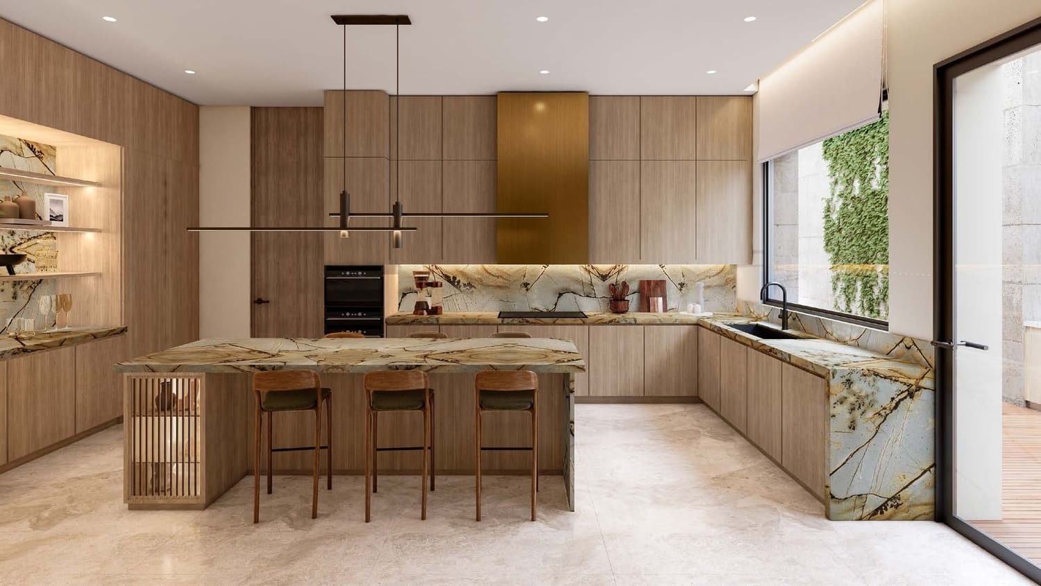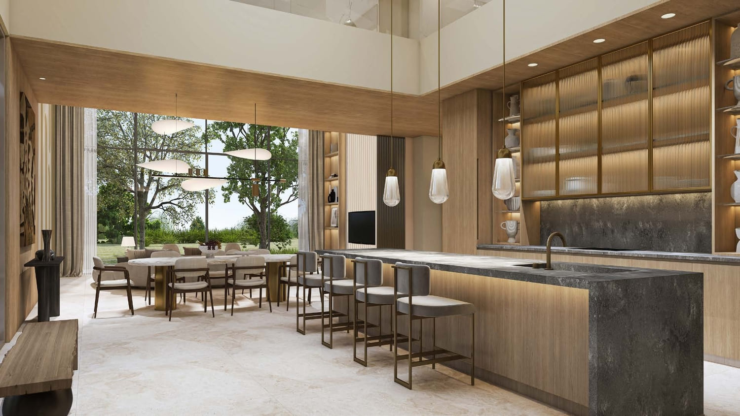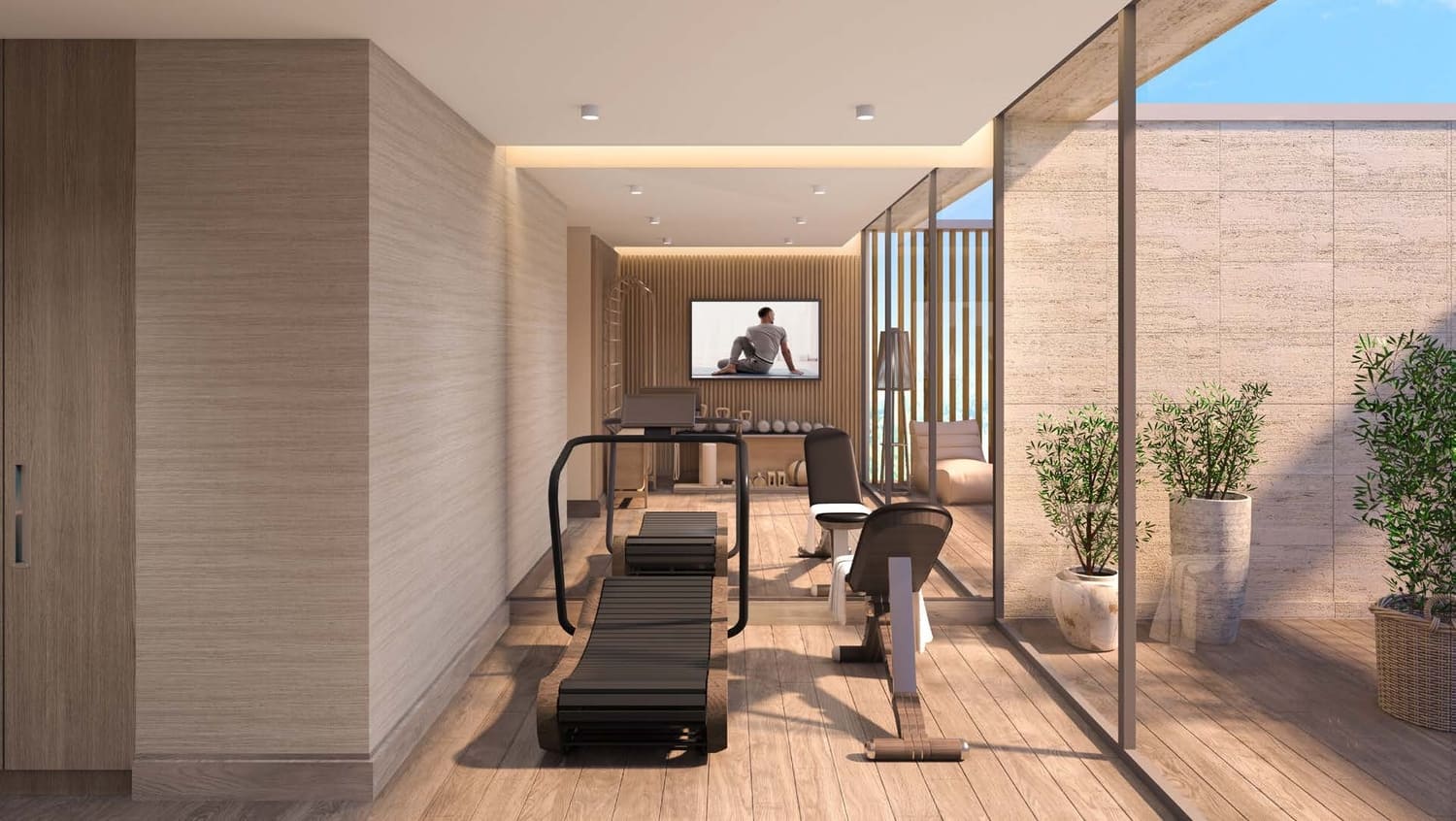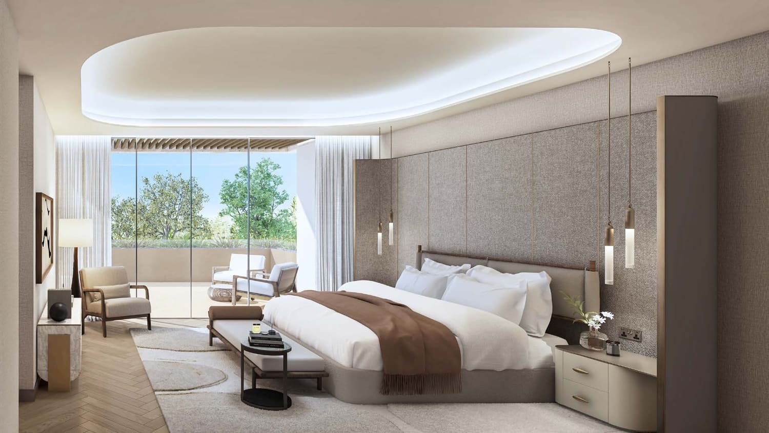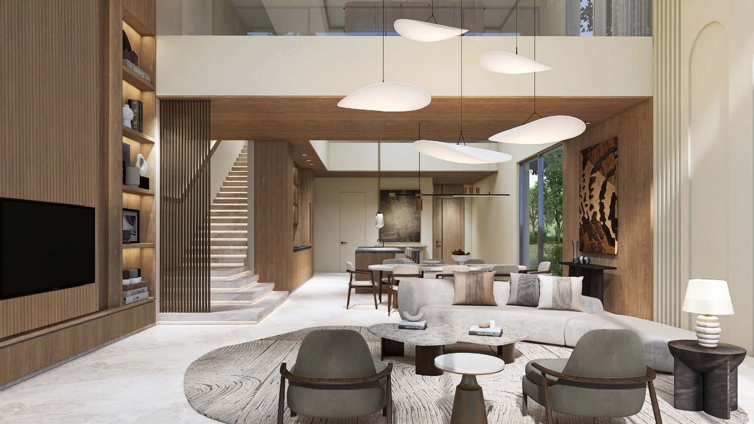 Bespoke with a French touch, these 28 three-floor villas follow the snaking contours of the masterplan. They introduce greenery into the living quarters, oriented towards the lagoon on one side, and the park on the other; optimally framing the scenic landscape. The scenography of the living experience is set up with a procession of single and double height spaces leading from the entrance to the garden and the beyond, combining contemporary design with luxurious comfort. Optimal for a summer retreat.