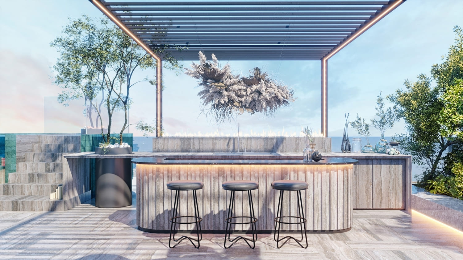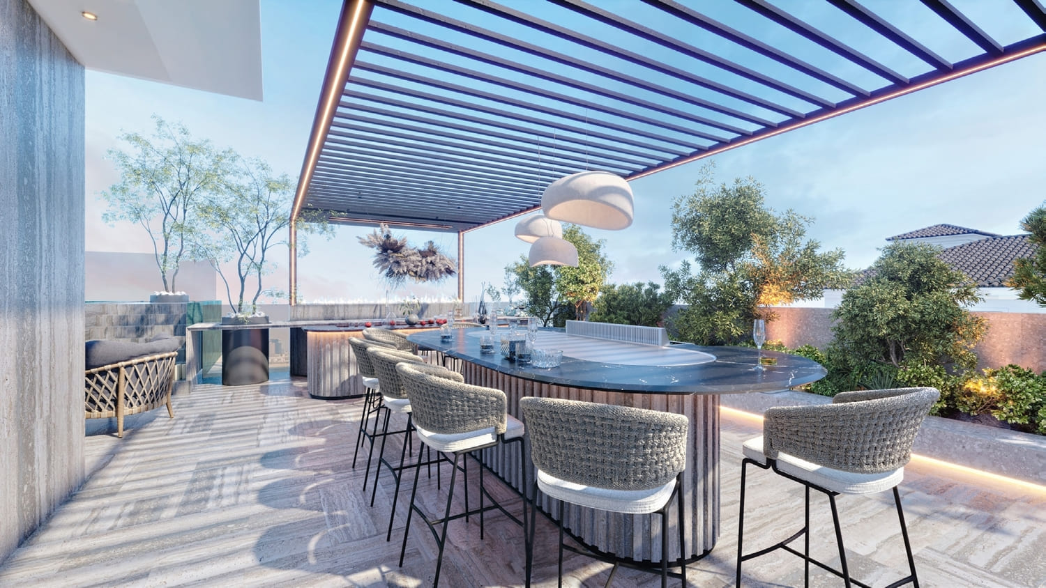 On the first floor, residents can enjoy a spacious master suite with a walk-in closet, his and her bathrooms, and a safe room. There are four additional bathrooms and guest rooms, balconies, and a roof terrace with an infinity pool, sunbath deck, external lounge, external bar, DJ area, washroom, and sitting area. With Dubai Marina, Mall of the Emirates, and Downtown Dubai just minutes away, SeaRenity offers an exceptional location and an unparalleled lifestyle.