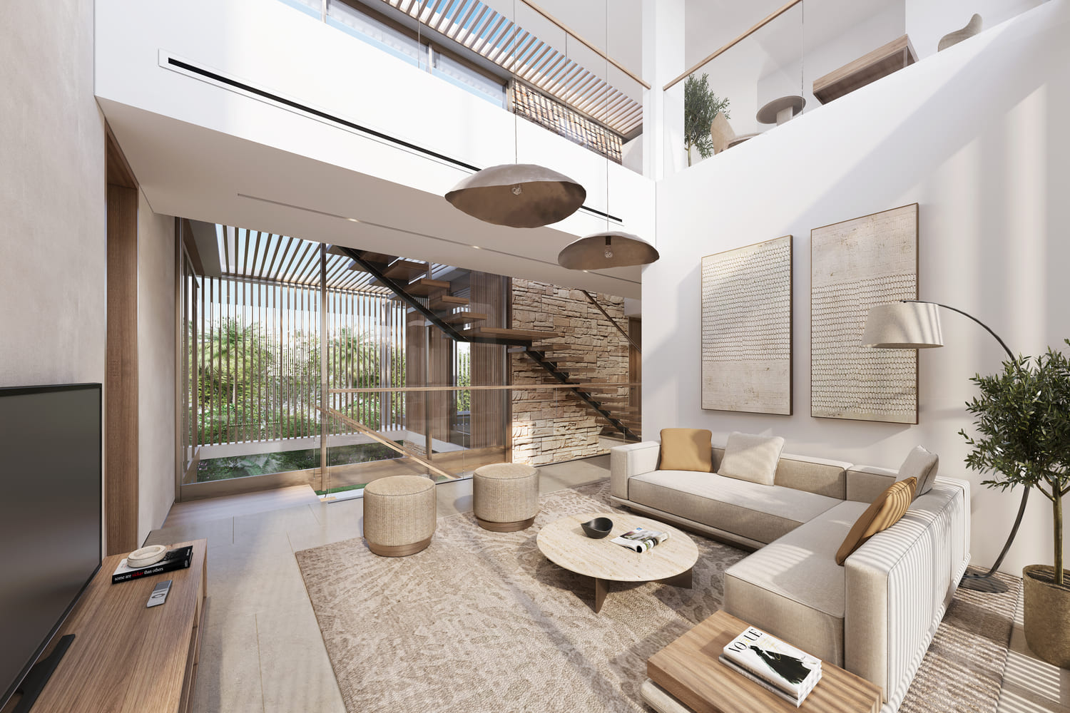 Discover The Acres’ exquisite villas, distinguished by their signature outdoor rooms and rear gardens that merge with the nature around you and offer the most refined living space. The villas’ contemporary design, characterised by an open-plan layout, double-height living spaces and floor-to-ceiling windows, effortlessly brings the captivating flora indoors where nature is a natural part of everyday living.