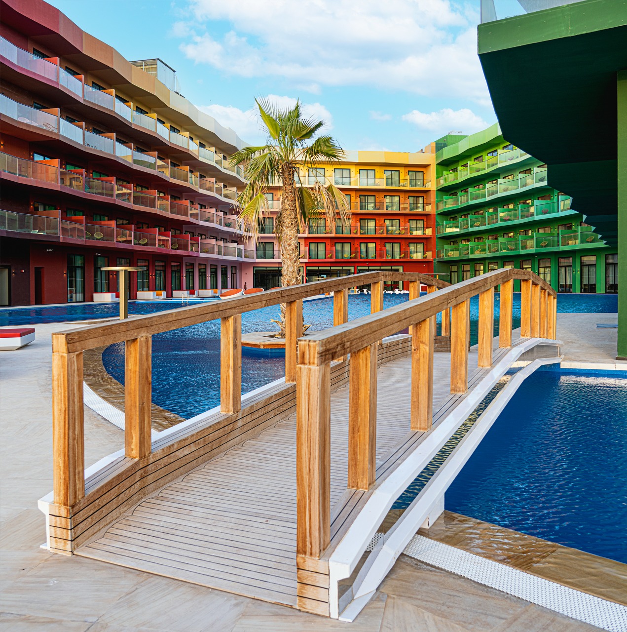 The company has created the world's first floating and underwater residential complex, the first specialized wedding hotel, and the world's first artificially created streets with controlled climate.