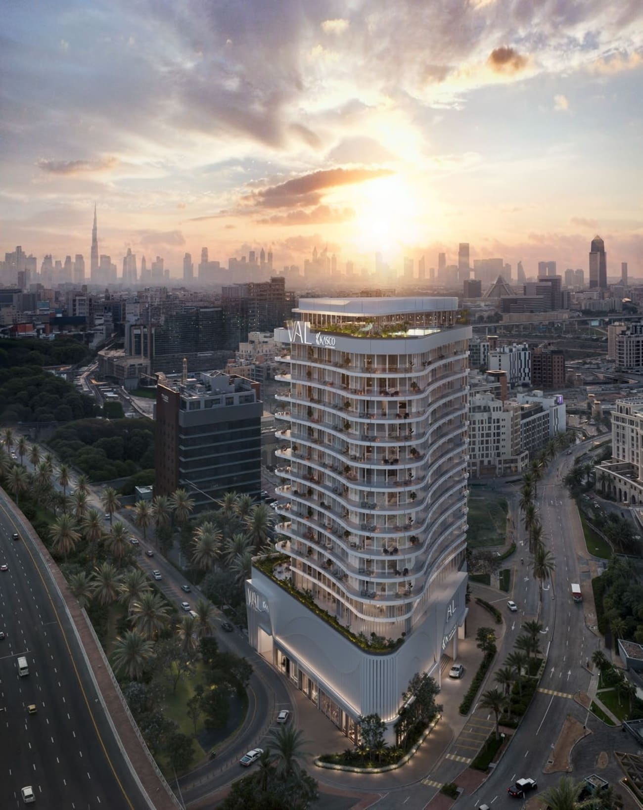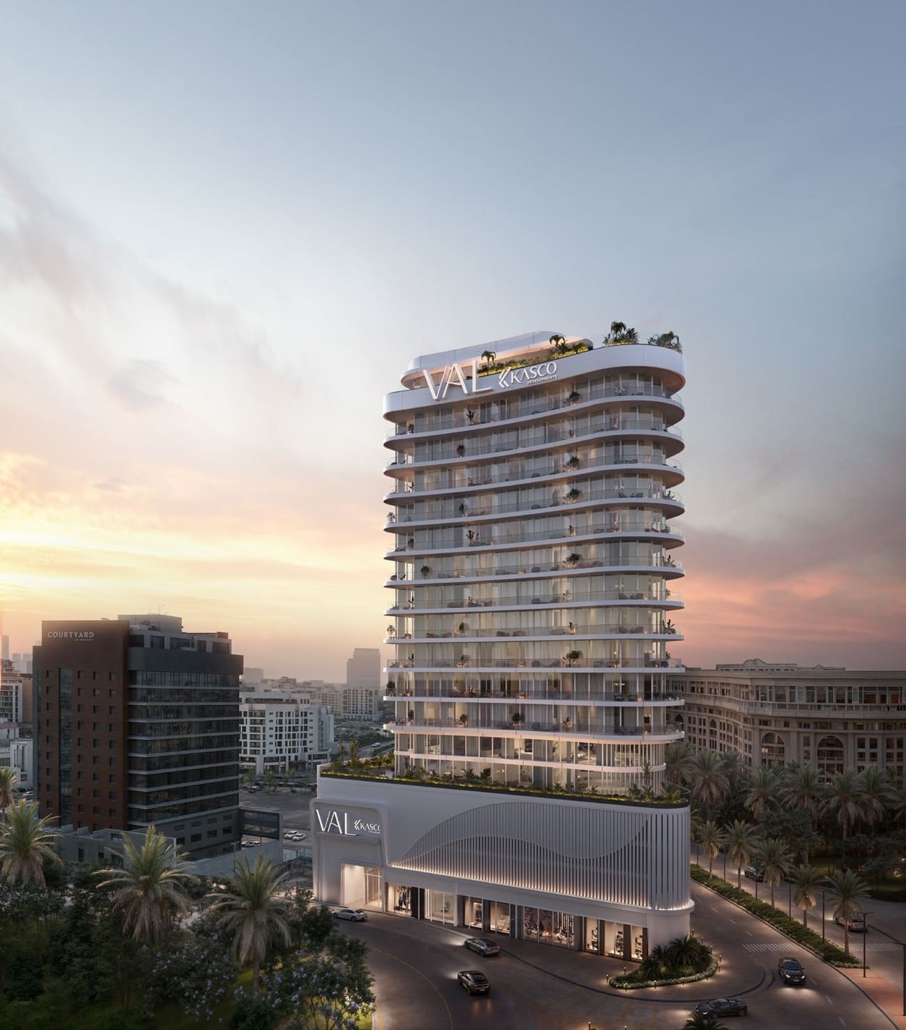 Val by Kasco is a premier residential development located in the vibrant Al Jaddaf district of Dubai, offering an array of luxurious studio, one-bedroom, and two-bedroom apartments. This remarkable project stands out with its unique triangular design, ensuring each unit enjoys breathtaking panoramic views of the waterfront and Dubai’s iconic skyline. Positioned beside the renowned Versace Hotel, Val by Kasco elevates urban living with a blend of sophistication and exclusivity.
