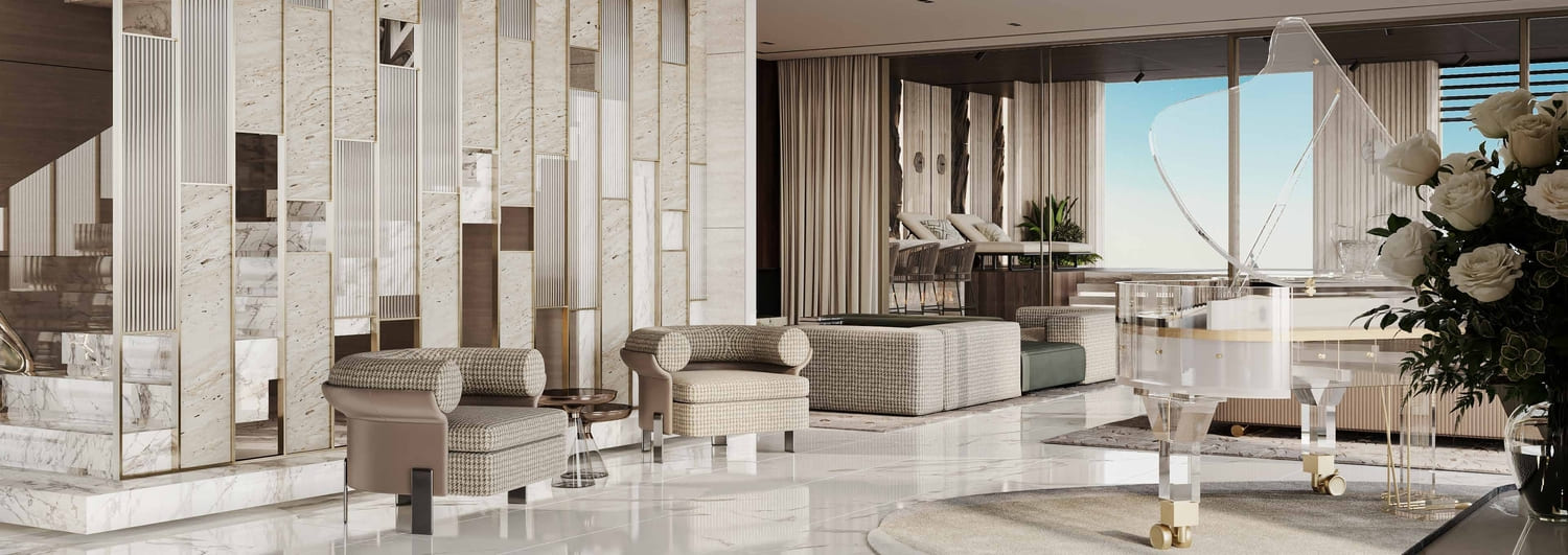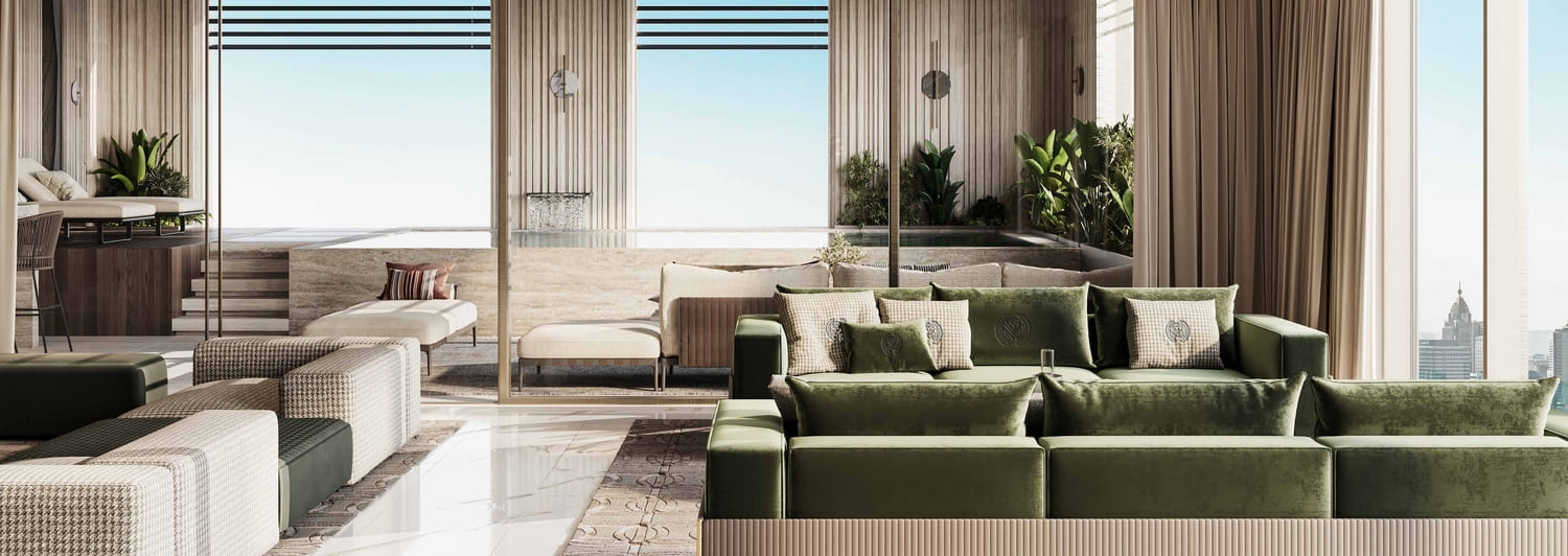 The residences at Franck Muller eternitas Tower Living showcase interiors that project luxury and welcoming atmosphere. The use of carefully selected high-quality materials and finishes creates touch of heavenly living space.