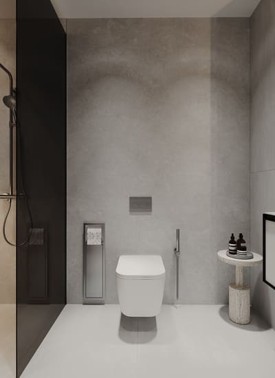 The interiors feature modern finishes and carefully selected materials. Sanitary ware is provided by Gala (Spain), with taps supplied by Ramon Soler (Spain), and tiled surfaces sourced from Türkiye. Kitchens are equipped with fitted cabinets and a full set of household appliances, including a refrigerator, microwave oven, oven, gas hob, dishwasher, and built-in hood. The residences are delivered unfurnished.